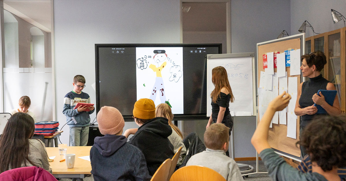 Am dritten Tag ging es darum, KI kreativ und kompetent einzusetzen. Nach einer Rechercherunde zu Trends wie "Luftmobilität" oder "Micro Housing" entwickelten die Teilnehmenden ihre Visionen der Zukunft. Dabei kombinierten sie analoge mit digitalen Fähigkeiten: sie zeichneten Storyboards, schrieben Texte und verwandelten ihre Ideen anschließend mit Hilfe von KI zu Liedern, Videos und Bildgeschichten.